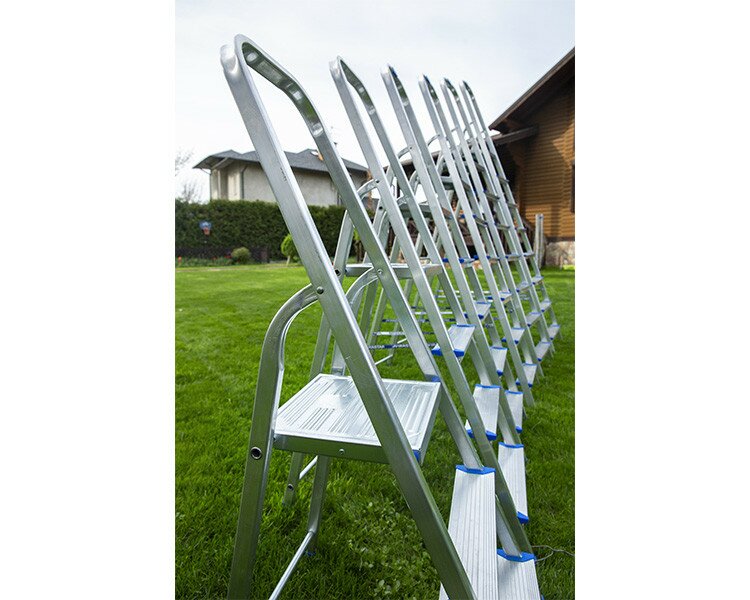 - Бытовые алюминиевые стремянки. Компактные, легкие и удобные модели, которые подойдут для домашнего использования – замены лампочек, поклейки обоев, мойки окон или ухода за садом.