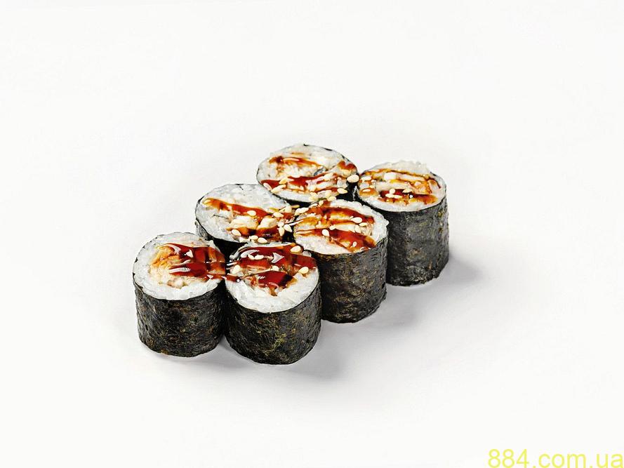 Цей рол — справжня класика в елегантній подачі. Вугор, глазурований у соусі унагі, обгорнутий у м’який рис і норі, створює гармонійний смак з легкою солодкістю і димним післясмаком. Родзинка — ніжна текстура вугра в поєднанні з приємним хрумким акцентом від норі. Завдяки легкому додатку кунжуту та краплі лимонного фрешу, рол залишає освіжаюче враження, не переобтяжуючи смакову палітру.