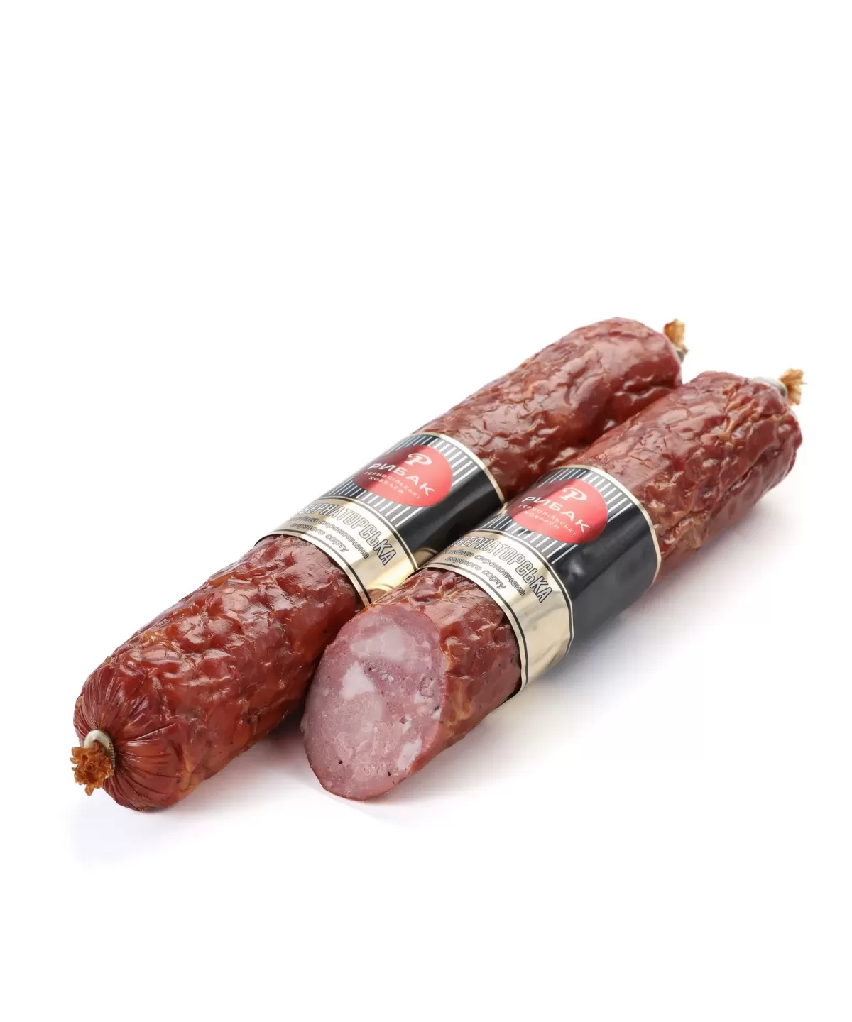 Асортимент ТМ “Рибак” включає сирокопчену ковбасу без консервантів, яку виготовляють за класичними рецептурами із добірного м’яса. На етапі виробництва продукт проходить повільне дозрівання, що дозволяє досягти ідеального балансу текстури, аромату та смаку без жодних добавок.